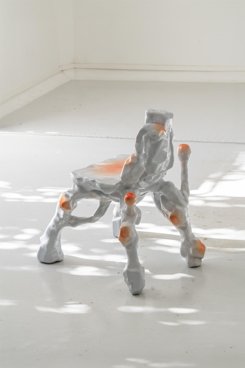 the sculptural chair recalls a mineral landscape with irregular, rock-like contours