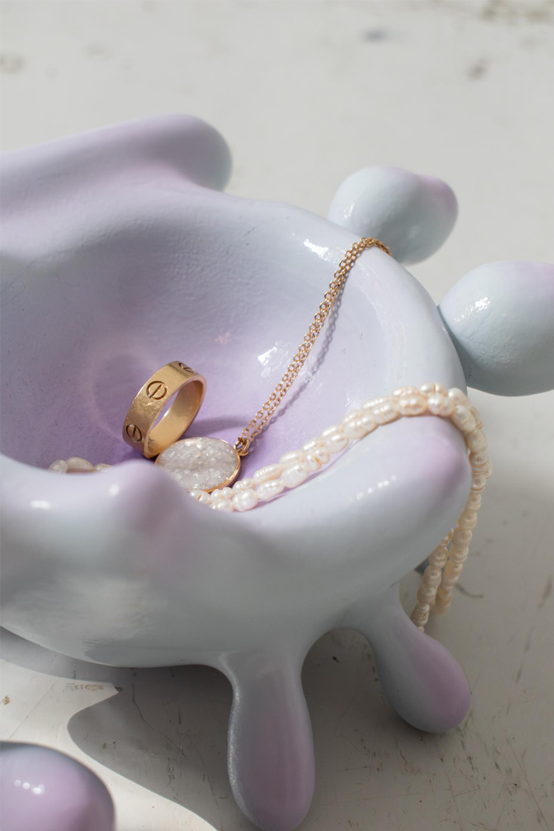 The works draw from observations of living organisms, growth patterns, and slow transformation. Rather than literal representations, the pieces, a chair, a table, and a tray, abstract biological processes into sculptural furniture and objects that occupy a space between utility and narrative form. Each piece is handcrafted or carefully fabricated, emphasizing material experimentation and surface treatment.