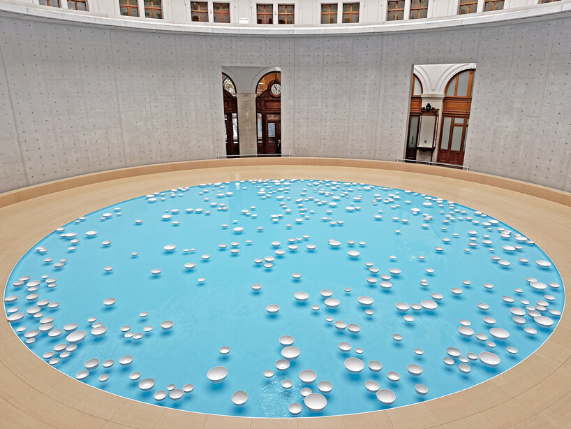 The post céleste boursier-mougenot turns bourse de commerce into immersive aquatic soundscape appeared first on designboom | architecture & design magazine.