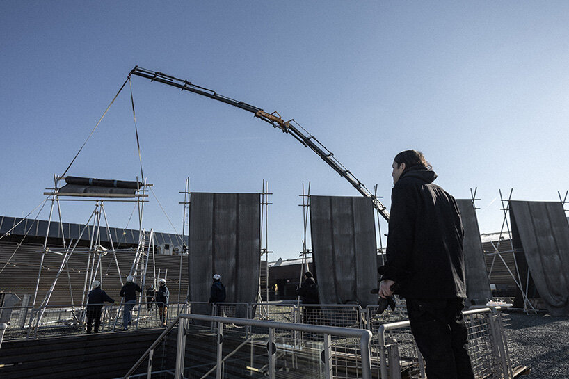The post concrete canvas wraps 18 scaffolding monoliths for monumental installation in florence appeared first on designboom | architecture & design magazine.
