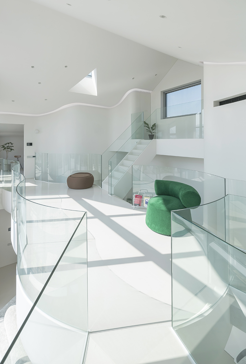 white airy interiors highlight the ‘cloud over the lake,’ HO-UN, design concept