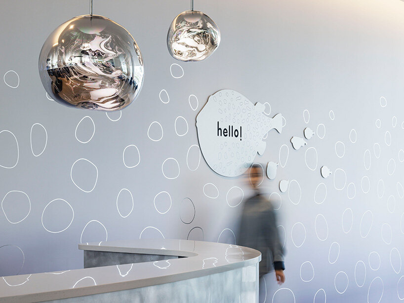 FUGU (puffer fish) – inspired graphics and reflective lighting elements mark the reception area