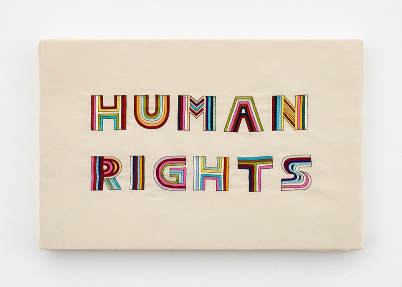 Paola PIVI Human Rights, 2026 Silk 36 × 55 × 4 cm | image by Claire Dorn, courtesy of the artist and Perrotin