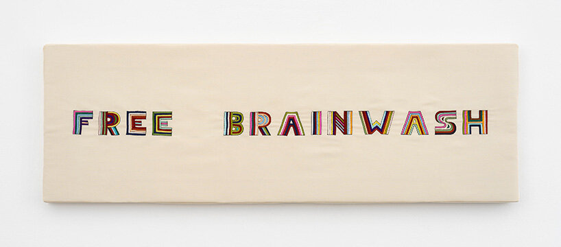 Paola Pivi Free Brainwash, 2026 Silk 40 × 120 × 4 cm | image by Claire Dorn, courtesy of the artist and Perrotin