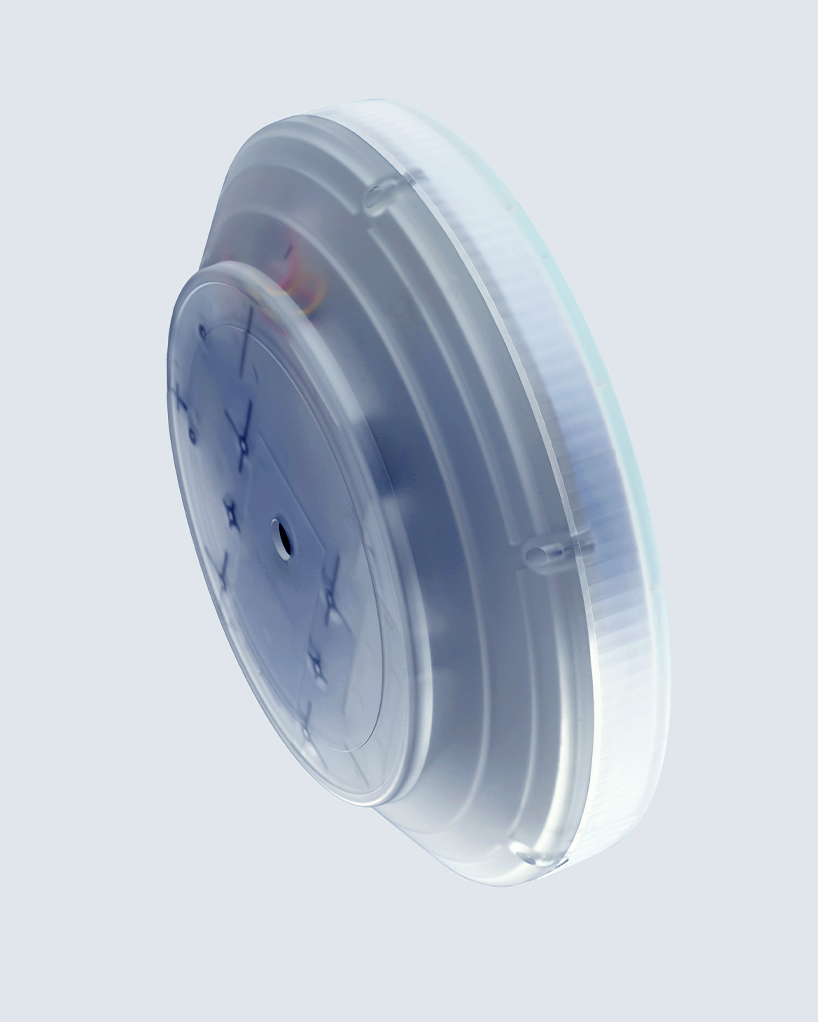 The mini version represents the fourth generation of the project and introduces a fully wireless configuration. A built-in rechargeable battery supports up to six hours of operation, enabling the device to function independently of a fixed power source. Additional sensory elements include a perimeter of RGB LEDs that provide adjustable ambient lighting and integrated speakers for ambient sound playback.